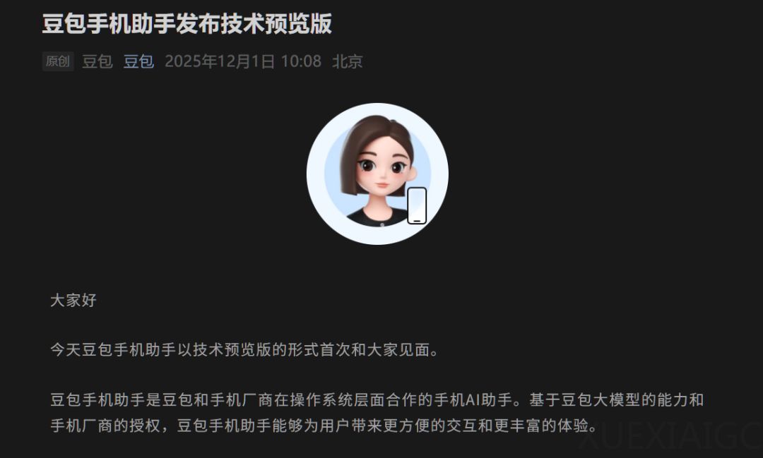 【关 键 词】 AI助手、手机应用、跨APP操作、智能调度、后台运行