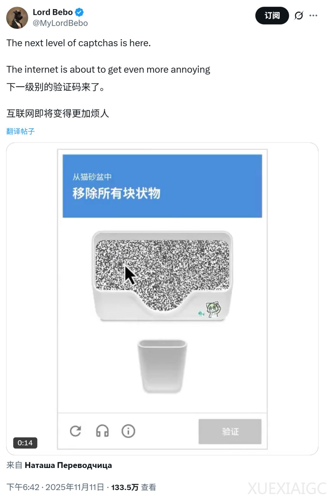 最近一篇调侃「我不是机器人」验证流程的帖子引发广泛关注,视频中用户需用鼠标将灰色「猫屎团」拖到垃圾桶,最后勾选「我不是猫」才能通过验证。该帖浏览量突破百万,评论区讨论热烈,有人对比传统红绿灯像素验证的模糊性,也有人联想到美剧《人生切割术》的数据精炼情节,甚至戏称「只有猫主子才是真正的人类」。其中最具争议的观点是:图像验证实际在为AI提供免费训练数据。