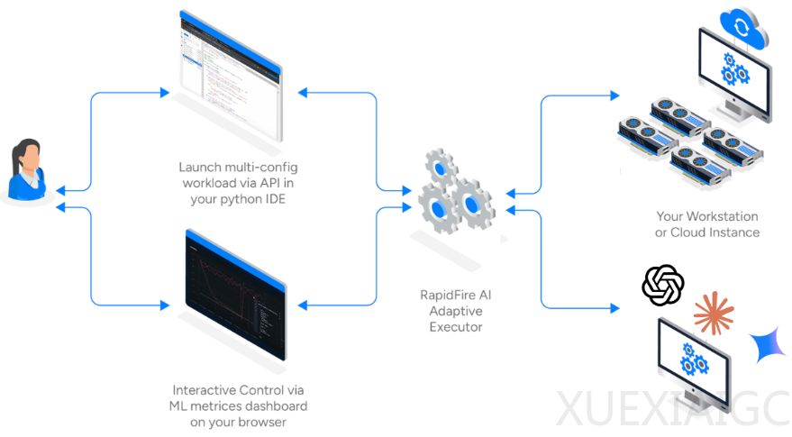 RapidFire AI的核心创新在于自适应分块调度技术。它将数据集切分为微小块,在单GPU上并发推进多个实验配置,几分钟内即可获得早期性能信号。表现不佳的配置可被快速终止,释放算力给更有潜力的实验。高效的共享内存机制使GPU计算单元利用率从60%提升至95%以上,特别适合参数高效微调场景。基座模型权重驻留显存,仅切换LoRA Adapter等小参数量组件,极大降低了切换延迟。