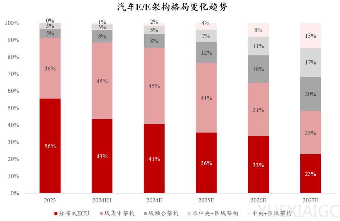 汽车产业正经历从传统交通工具向”超级移动智能终端”的转型,这一变革的核心驱动力来自电动化与智能化技术的快速发展。作为车辆控制系统的”神经中枢”,微控制器单元(MCU)的性能直接影响智能座舱体验、自动驾驶响应速度以及动力系统效率。随着汽车电子电气架构从分布式向”中央计算+区域控制”演进,传统MCU在算力、存储和安全性能上的局限性日益凸显,新一代高性能车规MCU成为支撑跨域融合的关键硬件基础。