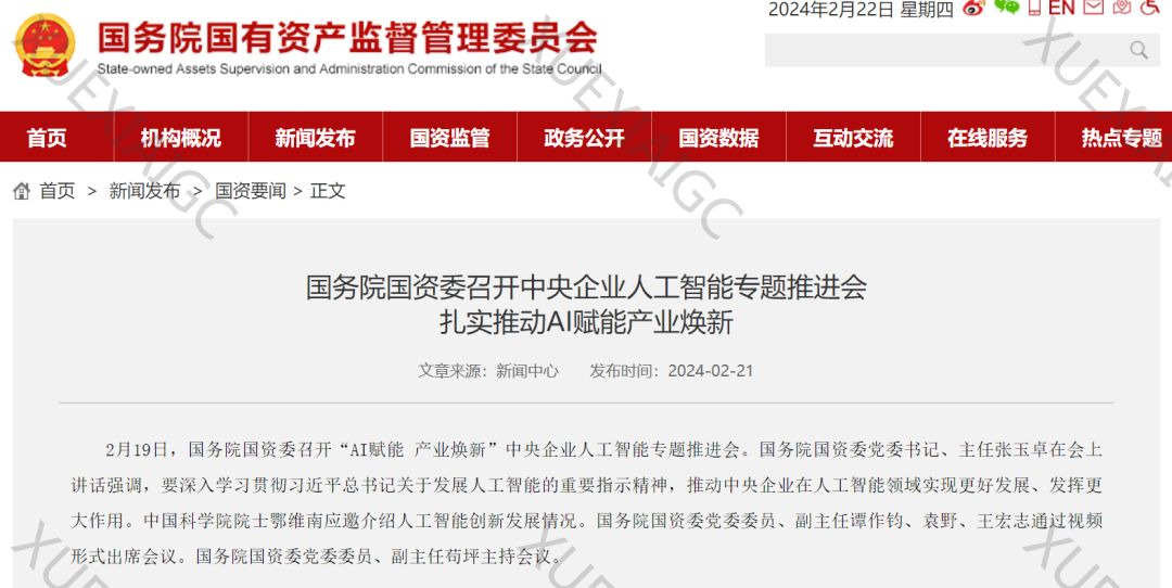 国务院国资委召开的专题推进会,标志着中国国家队在人工智能领域的积极布局。