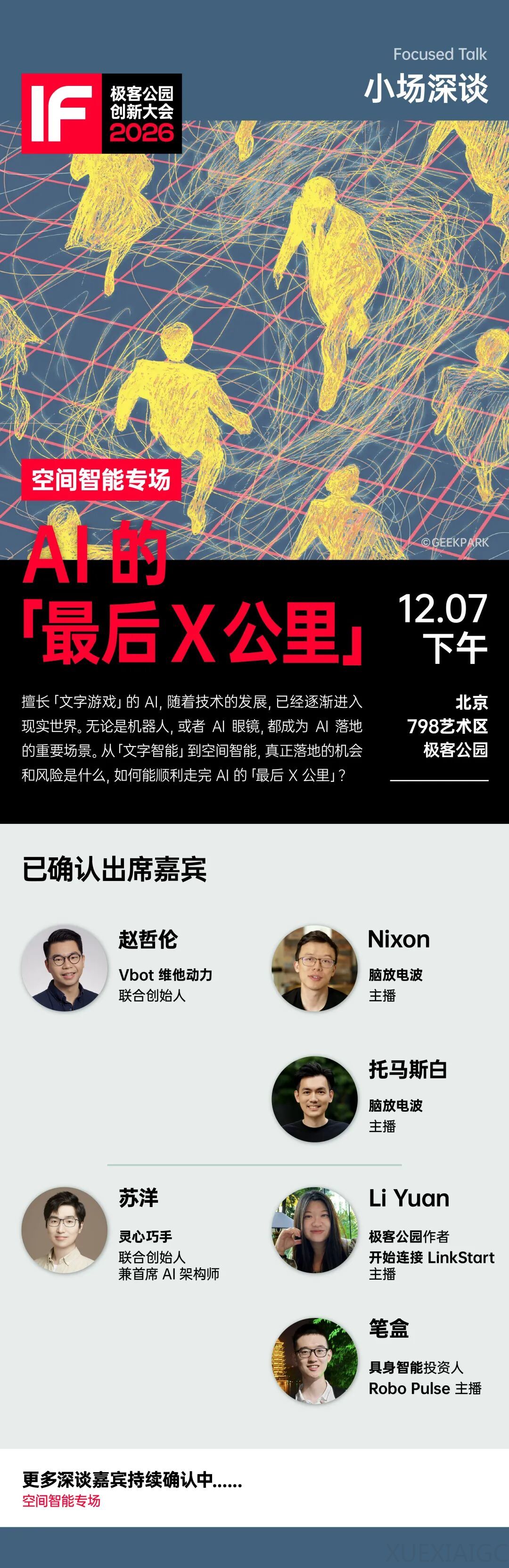 12月7日下午,极客公园分会场B将举办一场聚焦“空间智能”的小型深度讨论会,仅限60人参加。活动旨在避开泛泛而谈,集中探讨具身智能的关键技术节点和行业前沿问题。具体议题包括灵巧手的制作瓶颈、世界模型是否具身智能的最优解、感知与行动的匹配机制,以及行业现状与未来赌注。参与者不仅能聆听一线专家的洞察,还能直接提问和互动,获得最需要的信息。