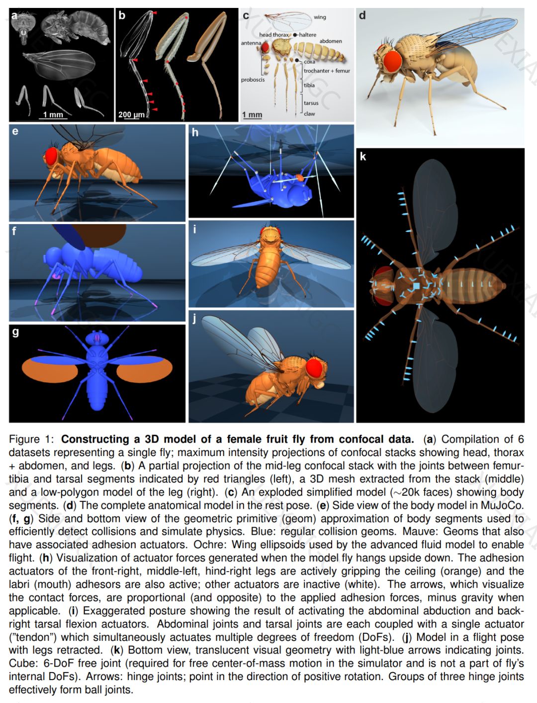 研究人员首先通过显微镜成像和计算机软件构建了精确的果蝇体外虚拟模型,然后将其转化为代码并输入MuJoCo模拟器。为支持模型,研究人员升级了模拟器,增加了附着力致动器和新的流体力学模型。接着,建立了一个人工神经网络,并用真实果蝇行为视频进行训练。未来,研究小组计划增加更多解剖和感官特征,甚至使用真实的神经网络为模型提供动力,并有望创建虚拟小鼠和斑马鱼模型。