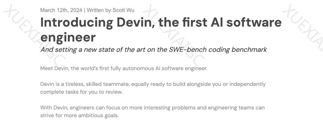 【关 键 词】 Devin、Cognition AI、自主编程、大模型技术、程序员取代