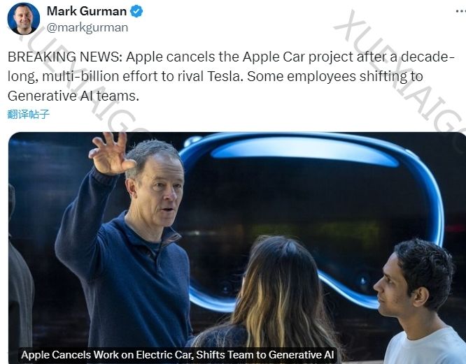 文章主要讲述了苹果公司取消造车项目Apple Car的消息,以及业界对此的反应和评论。苹果公司在经过十年的努力与数十亿美元的投入后,最终决定取消造车项目,部分员工被转移到生成式人工智能团队。这一决策引发了业界的广泛关注和讨论,包括特斯拉CEO马斯克、理想汽车CEO李想、小鹏汽车创始人何小鹏、蔚来汽车CEO李斌和小米CEO雷军等车企大佬纷纷发表了自己的看法。