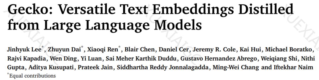 【关 键 词】 文本嵌入、Gecko模型、LLM、自然语言处理、数据蒸馏