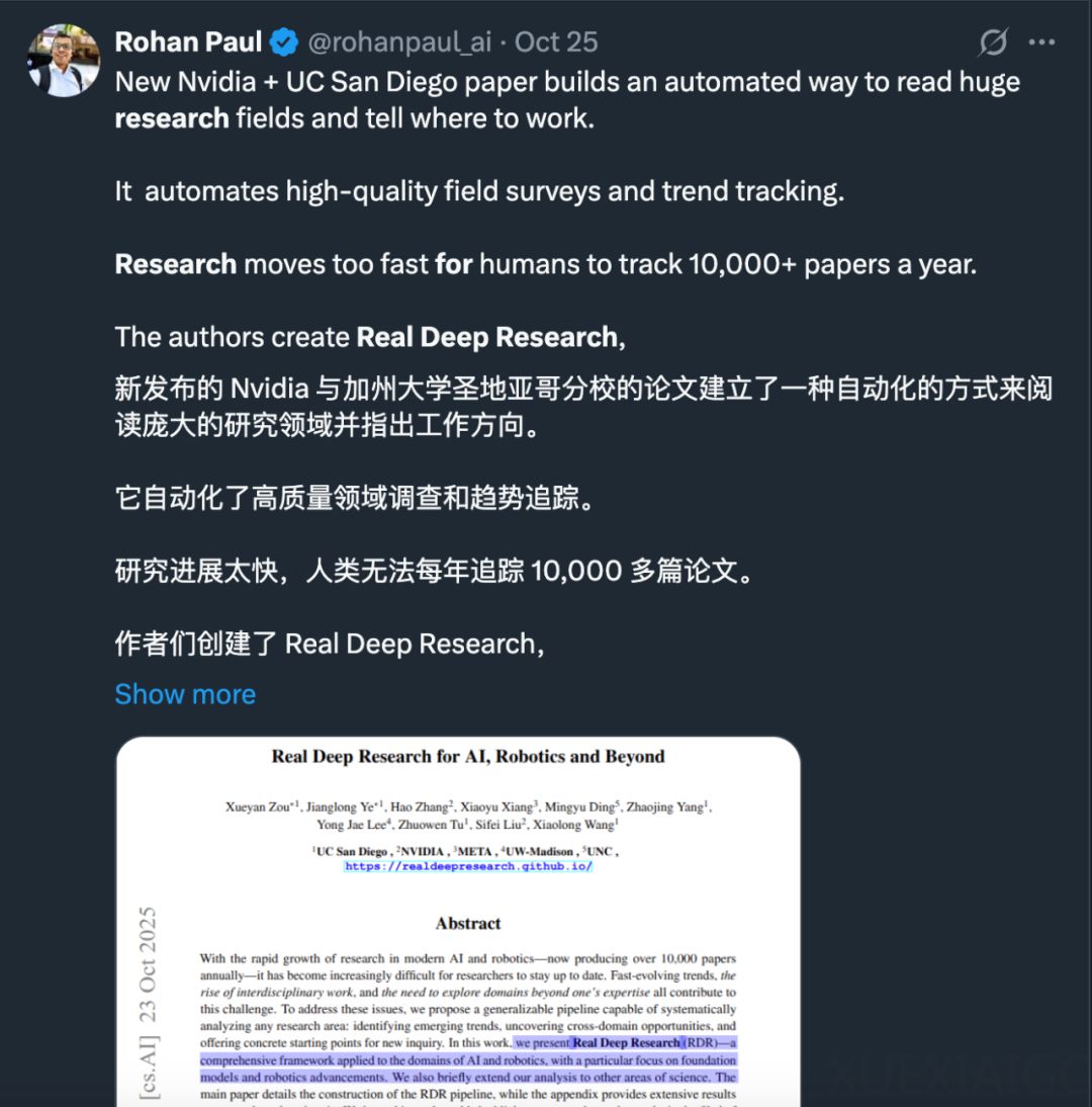 【关 键 词】 AI研究、自动化综述、趋势分析、机器人学、论文阅读