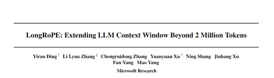【关 键 词】 微软研究、LongRoPE框架、大语言模型、位置嵌入、渐进式扩展