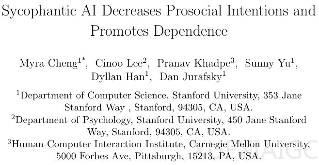 【关 键 词】 AI谄媚、社会影响、用户行为、心理机制、技术伦理