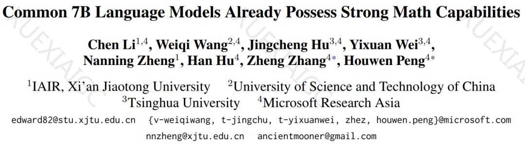 这篇文章介绍了一项由西安交通大学、中国科学技术大学、清华大学和微软亚洲研究院的学者共同完成的研究工作,名为Xwin,旨在探索通用预训练下规模为7B的语言模型在数学问题解决方面的潜力。研究发现,即使是规模较小的模型也具备强大的数学推理能力,通过合成数据的有监督微调方法,模型在数学问题上表现出色。然而,研究也指出当前语言模型存在数学能力不稳定的问题,通过扩大有监督微调数据集和使用合成数据,研究团队成功提高了模型生成正确答案的可靠性。最终,他们开发的Xwin-Math模型在数学基准测试上取得了显著的成绩,超越了之前的SOTA模型,甚至有望超越一些规模更大的模型。研究还提出了新的评测指标,展示了模型在数学推理泛化能力方面的表现。这项研究为未来在大型语言模型数学推理能力方面的研究提供了新的视角,为人工智能在数学问题解决方面的进步奠定了基础。