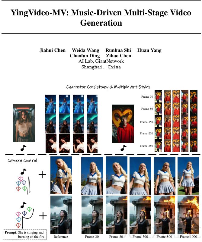 上海巨人网络AI实验室提出的YingVideo-MV框架通过创新的级联架构,将音乐语义分析、导演级镜头规划与时间感知视频生成相结合,显著提升了音乐视频生成的质量。该技术突破了传统音频驱动视频生成中运镜单一和长序列画面崩坏的限制,实现了精准口型同步、自然肢体动作与丰富运镜的高质量输出。数字人技术在音乐视频、Vlog和广告领域的应用面临的核心挑战在于如何让虚拟形象呈现具有感染力的表演,而非简单的对口型。现有模型通常难以处理复杂运镜、场景调度及长时间连续表演,导致画面单调、动作僵硬或身份特征丢失。