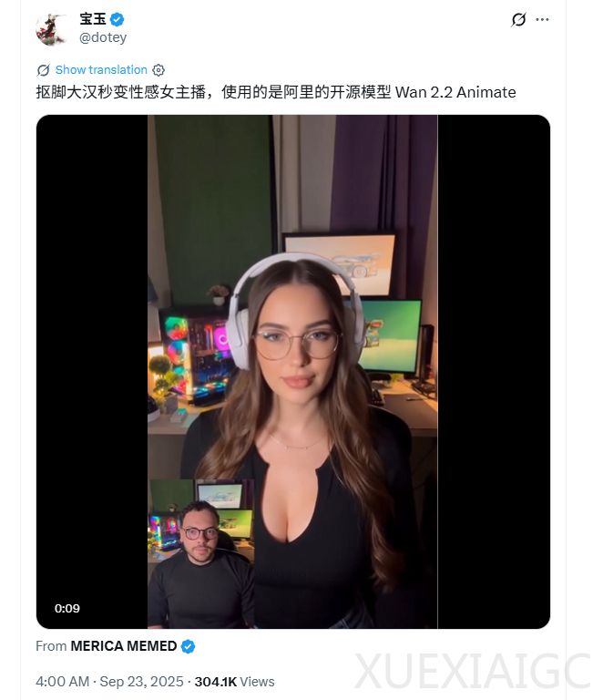 阿里开源模型Wan2.2 Animate近期因生成高精度换脸视频引发广泛关注。该技术通过结合静态人物图像与动态参考视频,能精准复刻表情和动作,甚至支持声音替换,实现形象与语音的双重转换。演示案例显示,普通男性用户可通过该技术生成女性角色舞蹈视频,效果逼真到难以辨别真实身份。尽管娱乐属性显著——如制作虚拟偶像舞蹈或影视二创(如让赵本山出演《了不起的盖茨比》),但其技术突破性更值得关注:将传统需专业动捕设备完成的工作简化为零门槛操作,且完全开源。