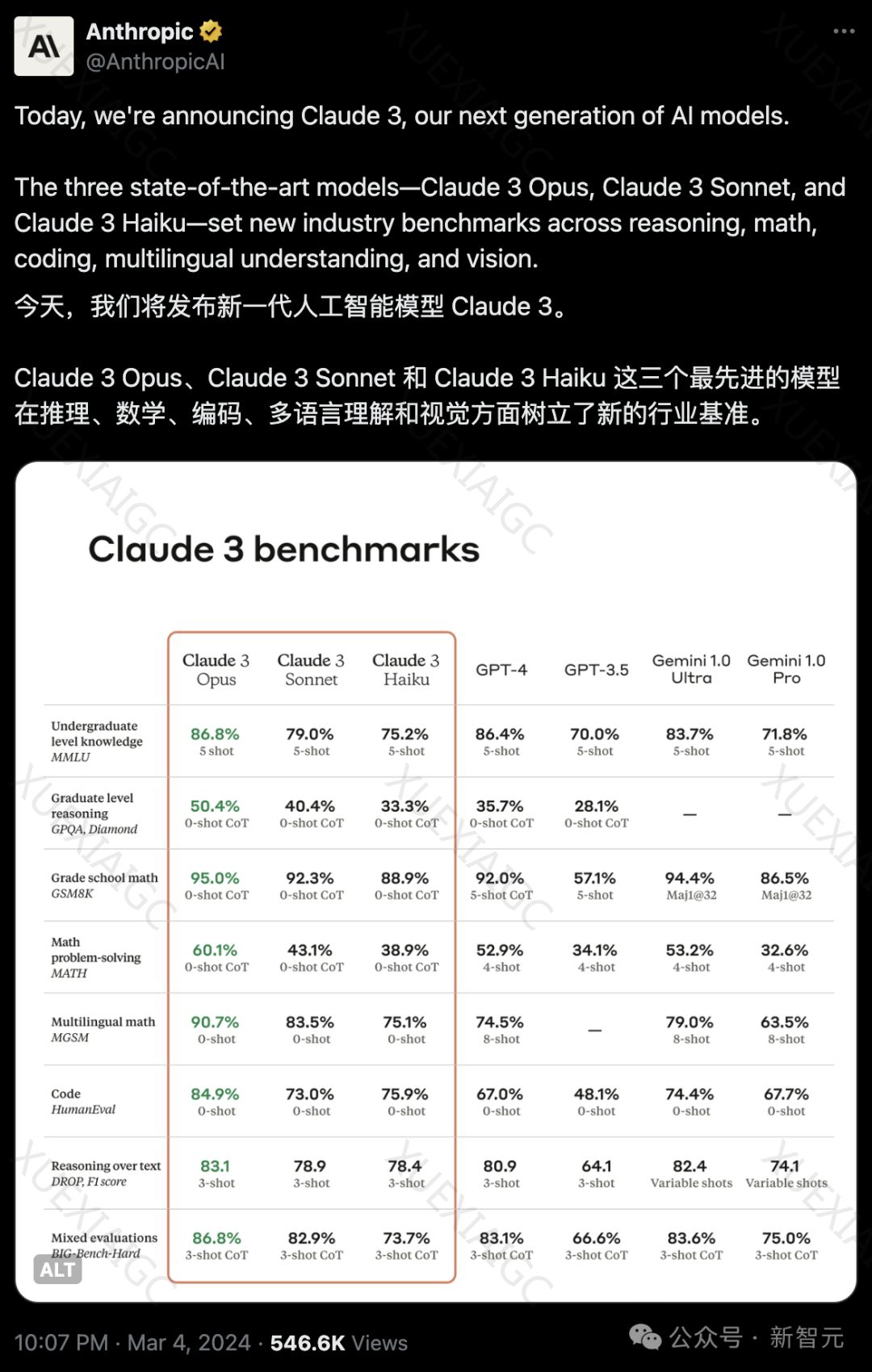 Claude 3系列模型的发布,标志着GPT-4时代的终结。Anthropic,这家由OpenAI前员工创立的初创公司,再次证明了其在AI领域的强大实力。Claude 3系列模型不仅在推理、数学、编码、多语言理解和视觉方面展现出卓越性能,还在安全性和偏见控制方面取得了显著进步。