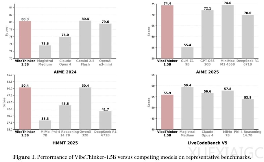 新浪微博近期开源的VibeThinker-1.5B模型以15亿参数、不足8000美元的训练成本,在多项顶级数学竞赛基准上击败了参数量达6710亿的DeepSeek-R1等巨型模型。这一突破性成果挑战了”模型性能与参数规模正相关”的行业共识,其成功源于创新的”频谱到信号原则”(SSP)训练哲学,该原则通过解耦监督微调(SFT)和强化学习(RL)阶段的目标,实现了思维广度与精度的协同优化。