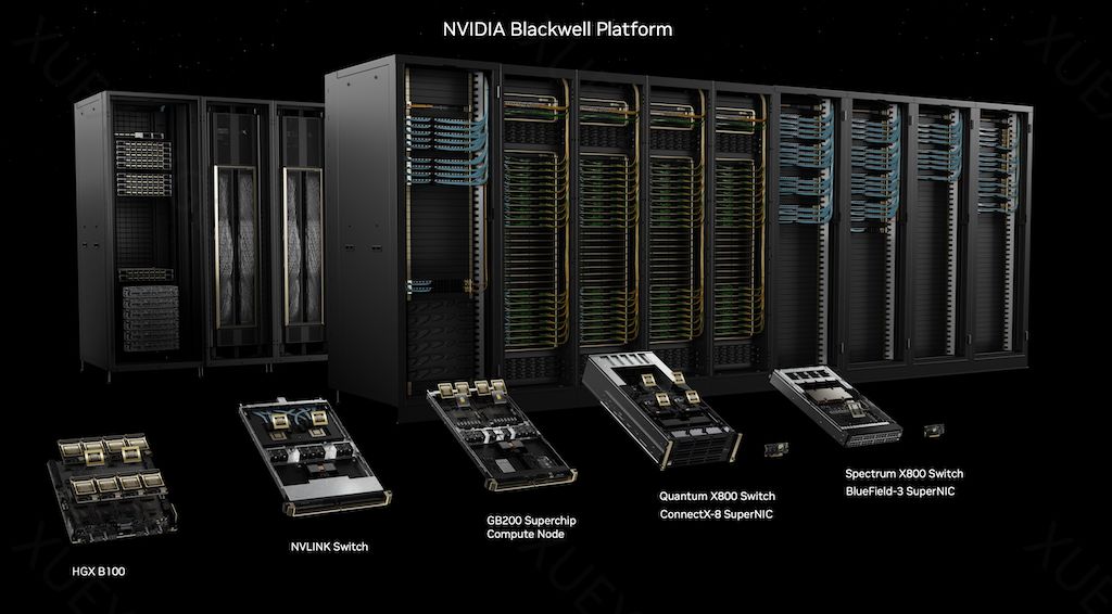 黄仁勋还展示了英伟达的新产品,这是一款<超大规模的芯片>,可以部署<27万亿参数>的模型。这个数字甚至比最大的模型(例如)还要大得多。GB200的系统可以与英伟达的和连接,提供高达<800Gb/s>的高性能网络。