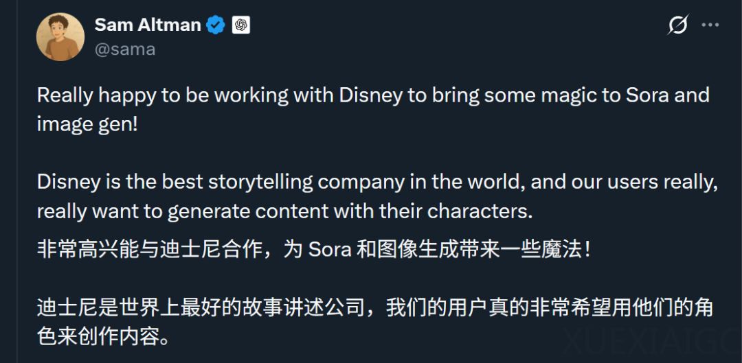 【关 键 词】 AI合作、版权授权、迪士尼IP、股权投资、内容生成